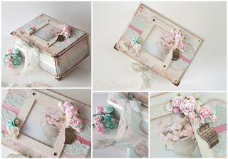 Kaunistamiseks kasutasin puuvillast pitsi, paberlilli, metallist filigreesid, kameed, neete.
